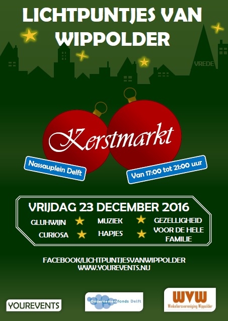 Op vrijdagavond 23 december zal de traditionele Kerstmarkt plaats vinden in de Wippolder op het Nassauplein. Tussen 17.00 en 21.00 uur zullen ondernemers uit de Wippolder een stand innemen en daaromheen zal gezorgd worden voor vele kinderactiviteiten met uiteraard wat lekkers te eten en te drinken. Een gezellig Kerstmarkt dus voor het hele gezin!
